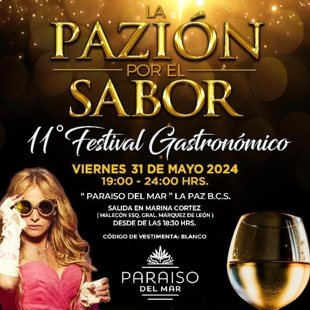 La compra del boleto incluyela transportación desde la Marina Cortez (a partir de las 18:30 hrs) hasta el evento en Paraíso del Mar y la degustación de alimentos y coctelería de 100 restaurantes y establecimientos participantes, al igual que el acceso a la presentación musical de la cantante Paulina Rubio.