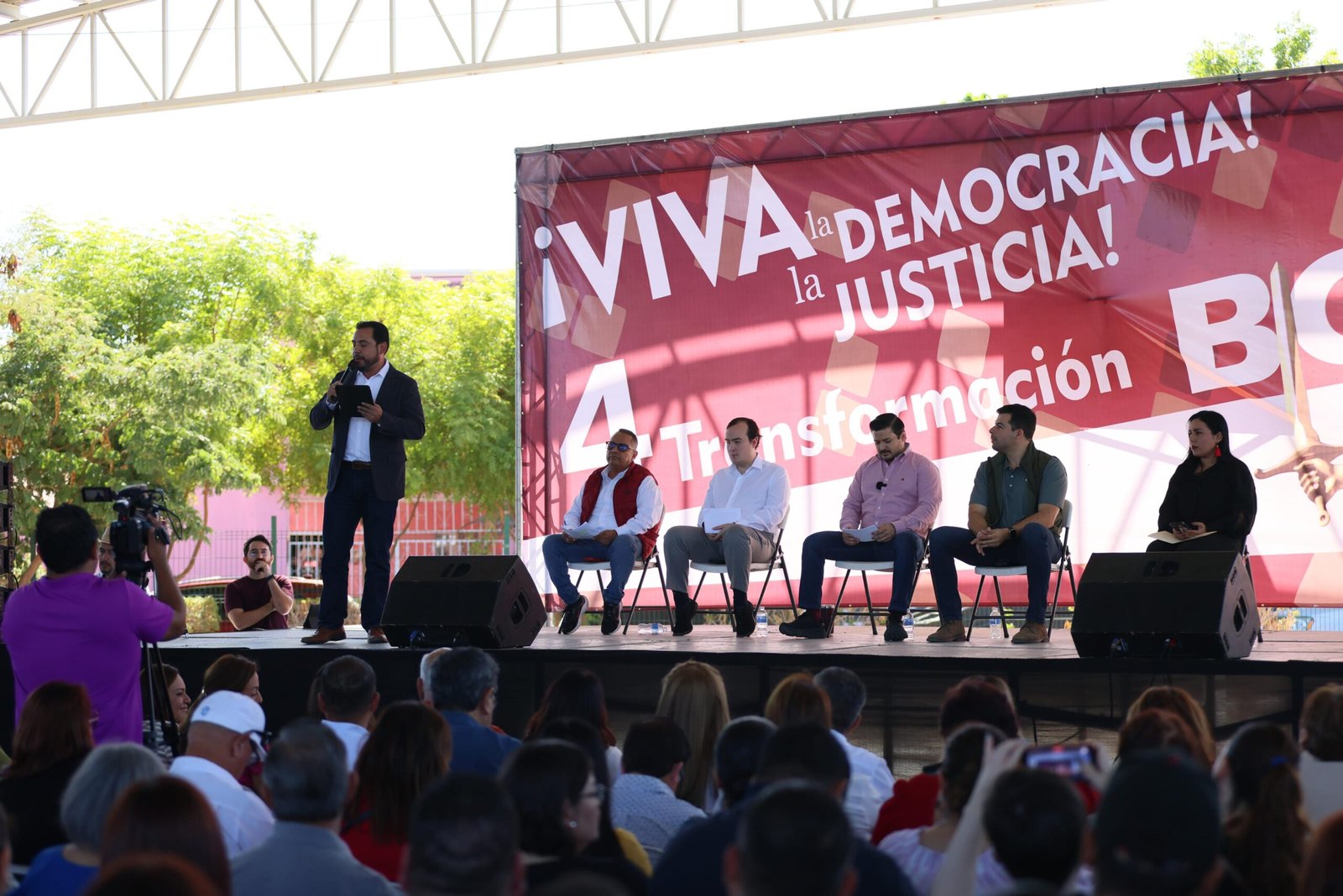 El edil hizo un llamado a la unidad a comprometerse con la justicia y la democracia para construir un “frente ideológico”. En su discurso, remarcó que la Cuarta Transformación ha permitido una participación ciudadana en la política más activa, otorgándole dignidad al país y devolviéndole el poder a la base de la nación, el pueblo.
