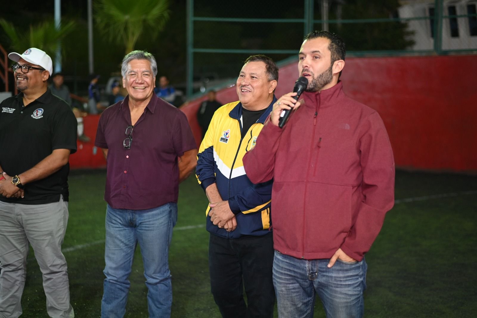 Durante la inauguración también asistió el secretario general del Sindicato de Burócratas Sección Los Cabos, Pablo Ramón Pino Verdugo; Alí Flores Ramírez, VII Regidor; Patrick Rivera López, subdirector del Indem y Leobardo Rangel, coordinador municipal de Fútbol.