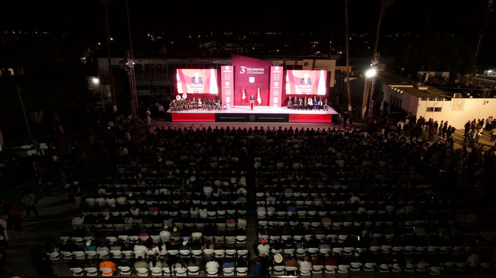 En estos tres años, agregó, se ha desarrollado un gobierno que cumple su palabra, que trabaja cercano a la gente y que gobierna con igualdad con un proyecto de cambio que se refleja ya en comunidades urbanas, en comunidades rurales y campos pesqueros. Ese mismo compromiso continuará transformando Baja California Sur para un mejor bienestar de todas y todos.