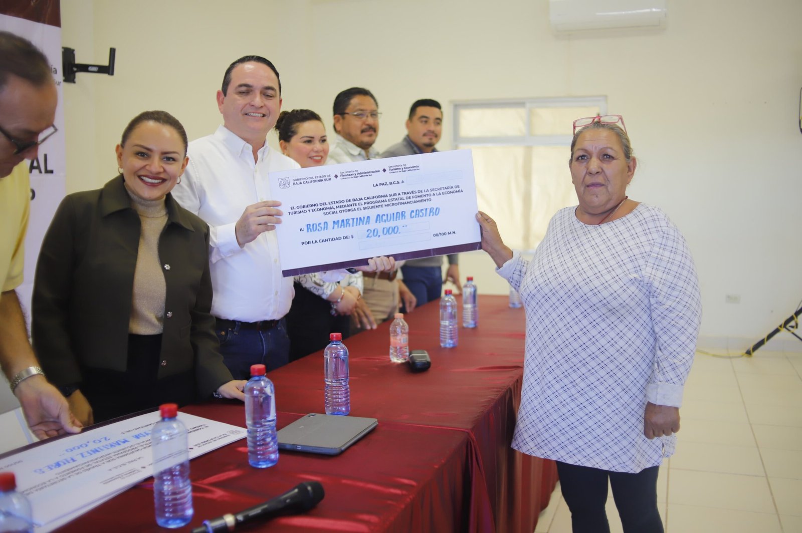 En un evento que se desarrolló la tarde del pasado viernes 13 de diciembre en la sala de juntas de Casa de la Cultura, el cual reunió a funcionarios y funcionarias de los tres niveles de gobierno, Paz Ochoa y Alonso Gutiérrez, subsecretario de Economía del Gobierno de Baja California Sur, encabezaron la entrega de los 47 apoyos de micro financiamiento.