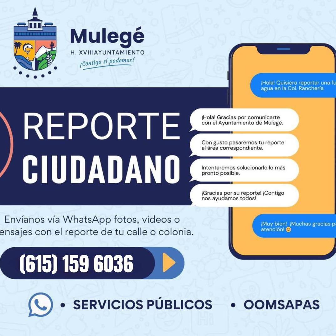 El Ayuntamiento de Mulegé recuerda a la población que pueden comunicarse a través del número de WhatsApp 615 159 6036, donde su reporte será atendido con prontitud.