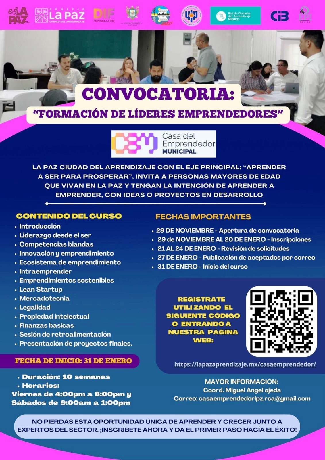 ° Los interesados pueden registrarse en la página lapazaprendizaje.mx/casaemprendedor/