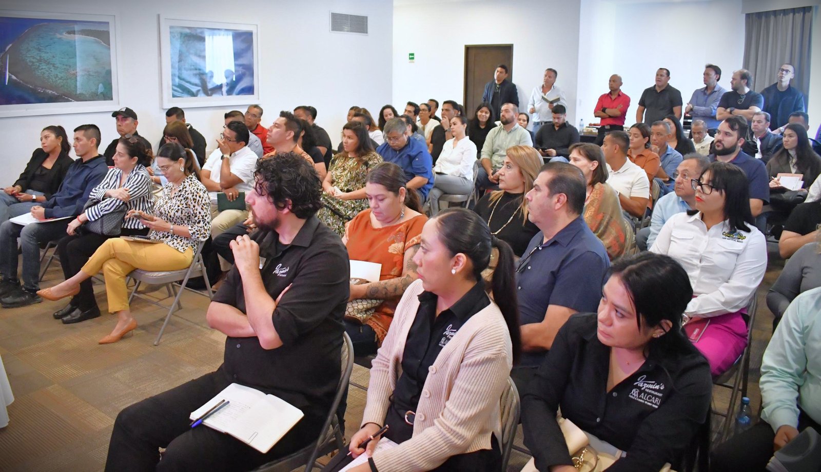 Los Cabos, Baja California Sur. –El tesorero municipal Rigoberto Arce Martínez y la directora municipal de Ingresos Luz María Otáñez, asistieron a la reunión informativa sobre la retención de la aportación para el Fideicomiso deSaneamiento Ambiental, con integrantes de la Cámara Nacional de la Industria de Restaurantes y Alimentos Condimentados (CANIRAC), que se desarrolló en el salón “Pioneros” del hotel El Médano en Cabo San Lucas, dando a conocer los nuevos conceptos que incluyen a restaurantes, arrendadoras de autos, embarcaciones y plataformas digitales.