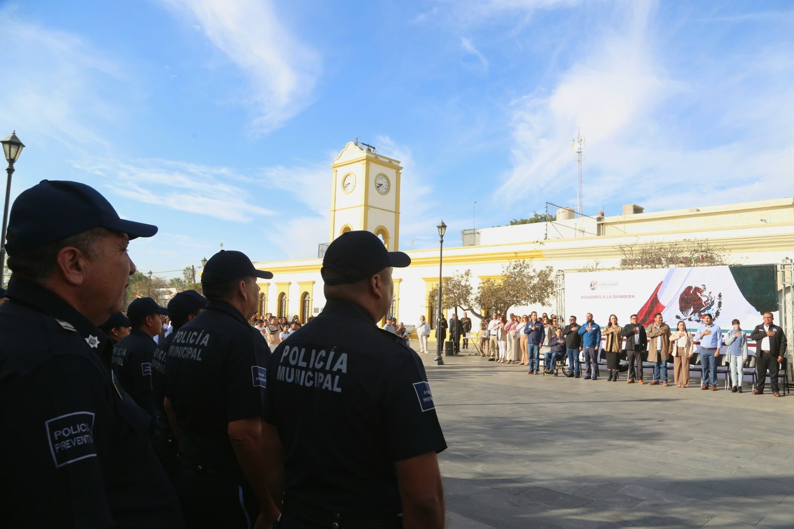 Para finalizar, el secretario general hizo un reconocimiento público a las y los elementos que integran la Dirección de Seguridad Pública, Policía Preventiva y Tránsito Municipal, por el trabajo desempeñado, al posicionar en primer lugar de percepción de seguridad pública de acuerdo con el Instituto Nacional de Estadística y Geografía (INEGI), como destino turístico en México a Los Cabos y el 6 lugar de 91 municipios a nivel nacional.