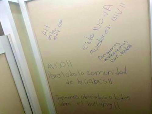 Luego de la polémica suscitada por los mensajes de amenazas de muerte en contra de alumnos que presuntamente incurrieron en prácticas de bulling encontrados en los baños de la universidad y que fueron ampliamente difundidos en redes sociales y medios de comunicación, se implementó un operativo de seguridad y vigilancia que mantiene a fuerzas policiacas estatales desde el viernes en la máxima casa de estudios en coordinación con las autoridades universitarias.