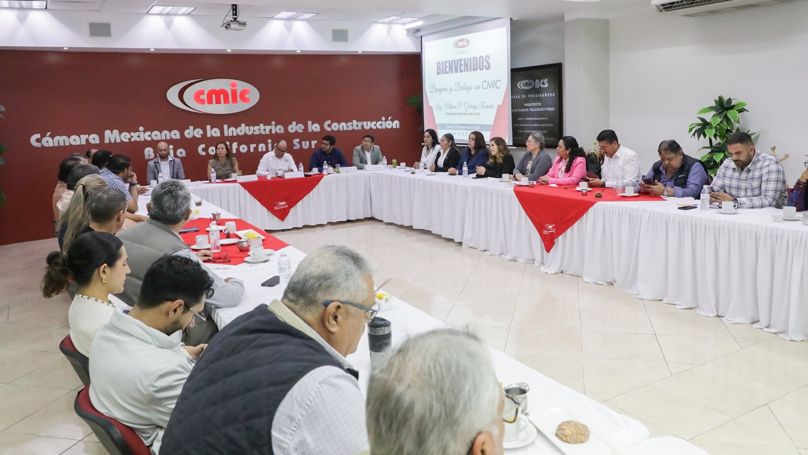 La Alcaldesa, Milena Quiroga Romero sostuvo un encuentro con integrantes de la Cámara Mexicana de la Industria de la Construcción (CMIC) en Baja California Sur. Durante la reunión, se intercambiaron ideas y estrategias para optimizar los procesos de licitación, agilizar la ejecución de obras públicas y fomentar un trabajo colaborativo que beneficie al sector de la construcción y a la ciudadanía.