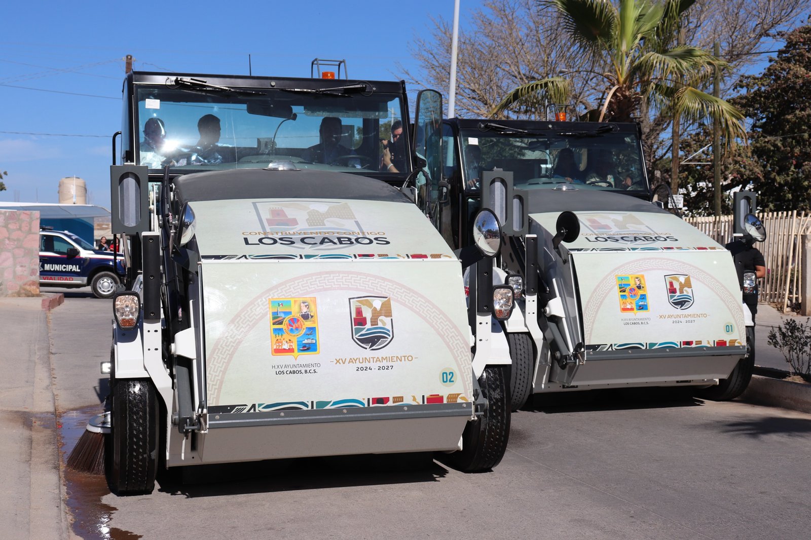Los Cabos, Baja California Sur.- Para agilizar los trabajos de limpieza en calles y avenidas del municipio de Los Cabos, el presidente municipal, arquitecto Christian Agúndez Gómez, junto a la delegada de Cabo San Lucas, Karina Jesús de la O Uribe, entregó las llaves de dos nuevas barredoras mecánicas para la Dirección General de Servicios Públicos, dependencia que será responsable del uso y operación para mantener en óptimas condiciones las vialidades, representando una inversión de $13 millones 177 mil 600 pesos.