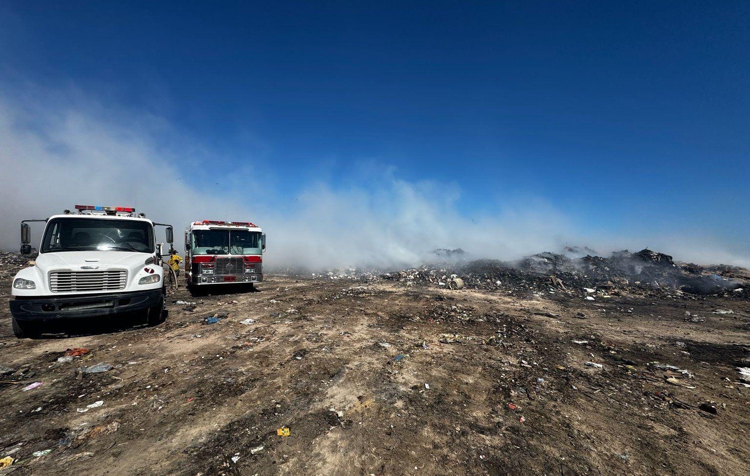El Ayuntamiento de La Paz informa que derivado de la coordinación de diversas corporaciones de emergencia, el incendio en el relleno sanitario fue controlado y se encuentra en fase de sofocación del humo.