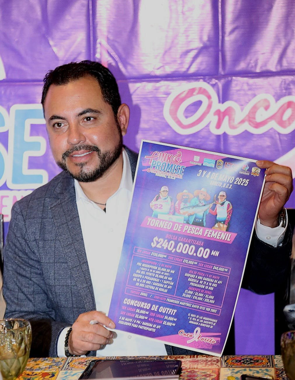 En el marco del anuncio del torneo femenil de pesca “Pink Promise”, que contó con la asistencia de la presidenta municipal del XI Ayuntamiento de Loreto, Paz Ochoa Amador; el titular del Fondo para la Protección de los Recursos Marinos (FONMAR) en el estado, Martín Inzunza Tamayo; la directora de la fundación Onco Loreto, María Elena Posadas; el director municipal de Pesca en Los Cabos, Carlos Almanza y el coordinador de los torneos Bisbee’s en México, Clicero Mercado, entre otras autoridades, se informó que el certamen se realizará este próximo 3 y 4 de mayo, contando con una bolsa garantizada de $240 mil pesos, distribuida entre los tres primeros lugares.