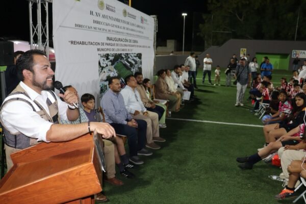 Durante la ceremonia, el presidente municipal de Los Cabos, arquitecto Christian Agúndez Gómez destacó la importancia de seguir impulsando espacios públicos seguros, accesibles y funcionales para las familias, especialmente para niñas, niños y juventudes; asimismo, reconoció la participación ciudadana en el cuidado del parque y reiteró que se continuará trabajando en acciones que beneficien directamente a las colonias del municipio.