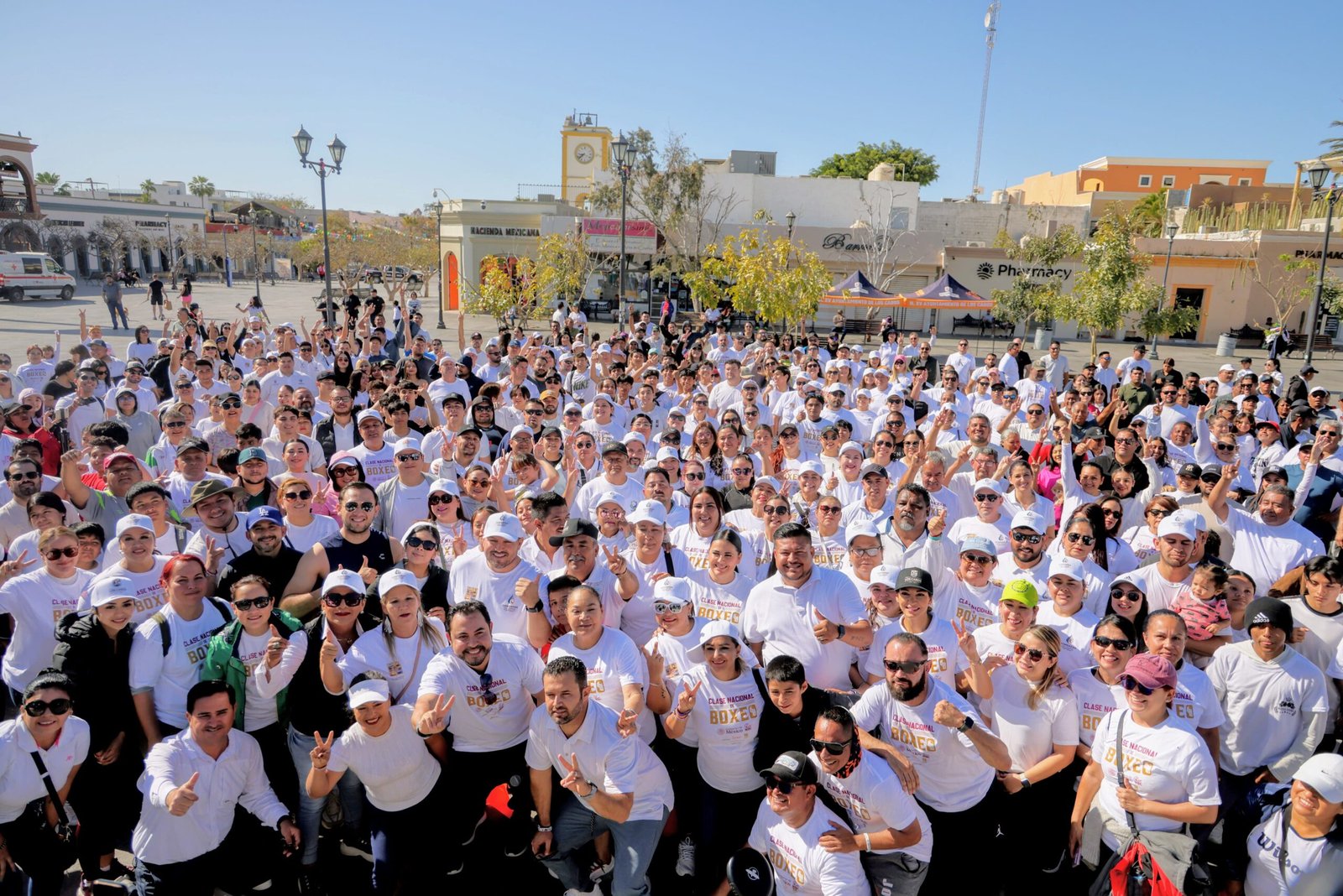Los Cabos, Baja California Sur.- El alcalde de Los Cabos, arquitecto Christian Agúndez Gómez, acompañado de la presidenta honoraria del DIF, Sol Delgado, así como servidores públicos de las diversas áreas del XV Ayuntamiento de Los Cabos participaron en la Clase Nacional de Box, un evento promovido por el Gobierno de México.
