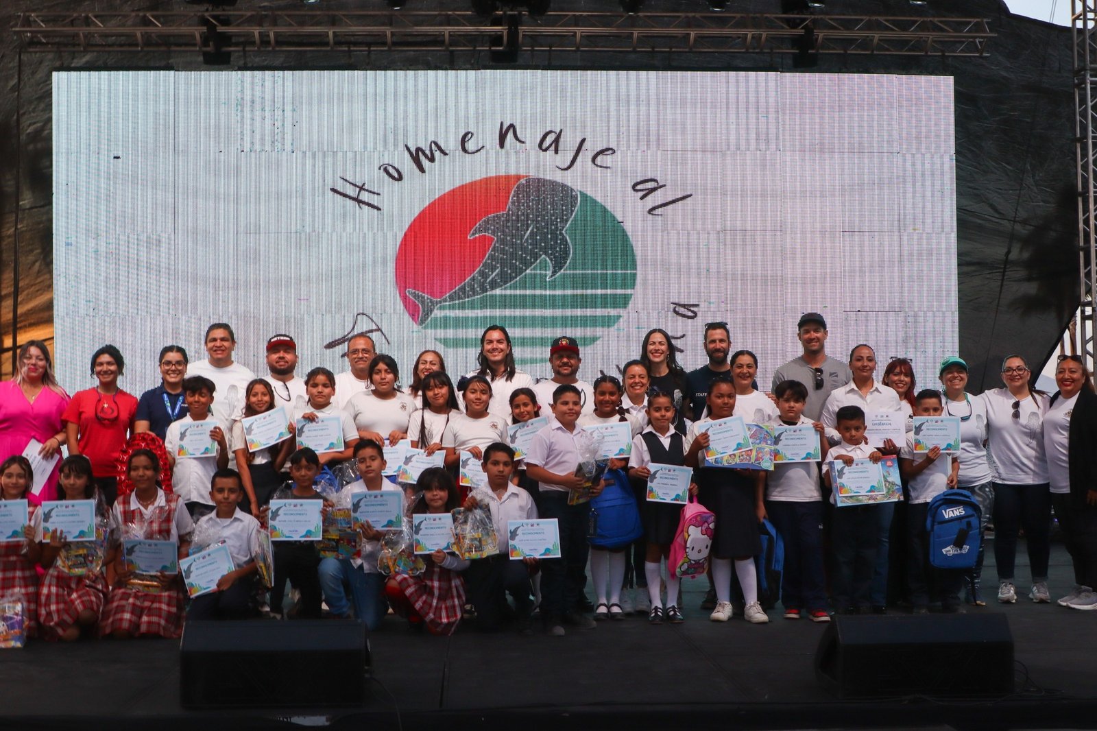 También se realizó la ceremonia de premiación del concurso «Guardianes del Tiburón Ballena», donde se reconoció a niñas y niños de distintas escuelas por sus creativas réplicas de esta especie hechas con materiales reciclados.