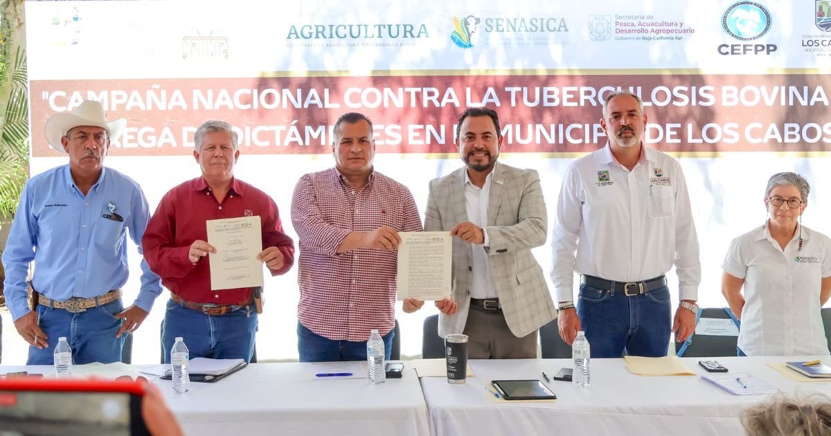 Los Cabos, Baja California Sur.- Porque el objetivo es continuar trabajando para que Baja California Sur sea declarado libre de tuberculosis, la mañana de este lunes, en un acto encabezado por el alcalde, arquitecto Christian Agúndez Gómez y el secretario general de Gobierno de Baja California Sur, Saúl Núñez González, el titular de Pesca, Acuacultura y Desarrollo Agropecuario, José Alfredo Bermúdez Beltrán, se desarrolló la “Campaña Nacional Contra la Tuberculosis Bovina y Entrega de Dictámenes en el Municipio de Los Cabos”.