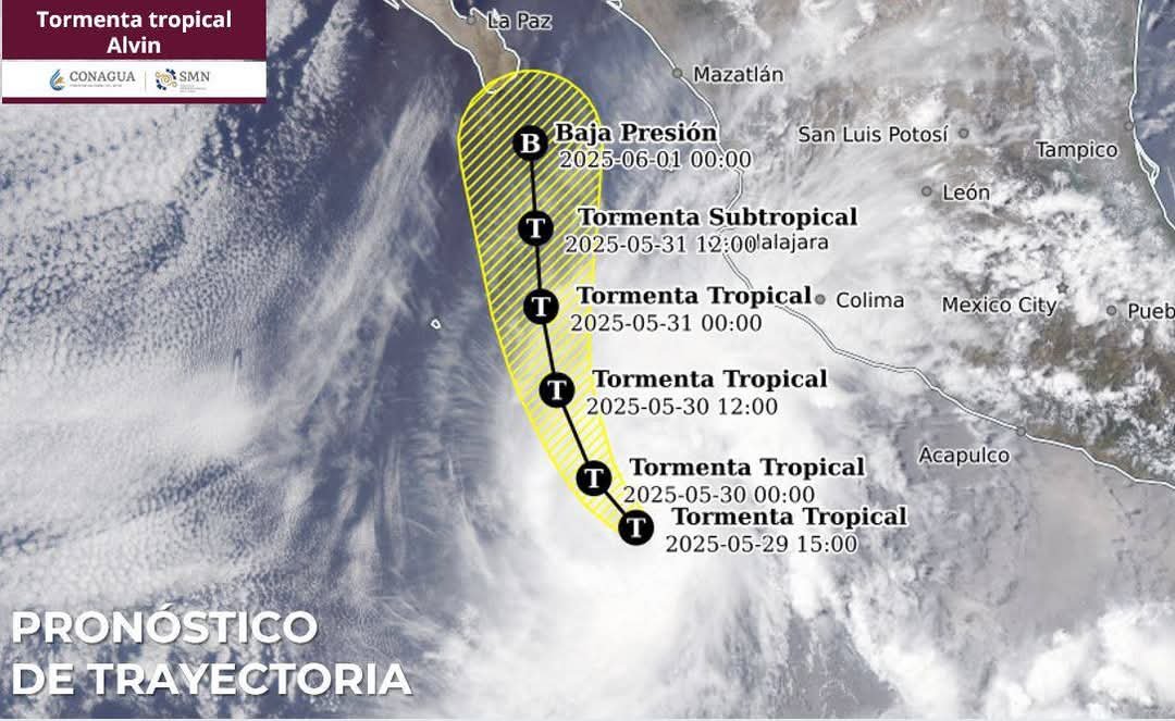 Los Cabos, Baja California Sur. – La Dirección Municipal de Protección Civil, encabezada por Francisco Cota Márquez, informa a la población que la tormenta tropicalAlvin” se ha intensificado en las últimas horas y continúa su trayectoria al sur de las costas de Jalisco y Colima.