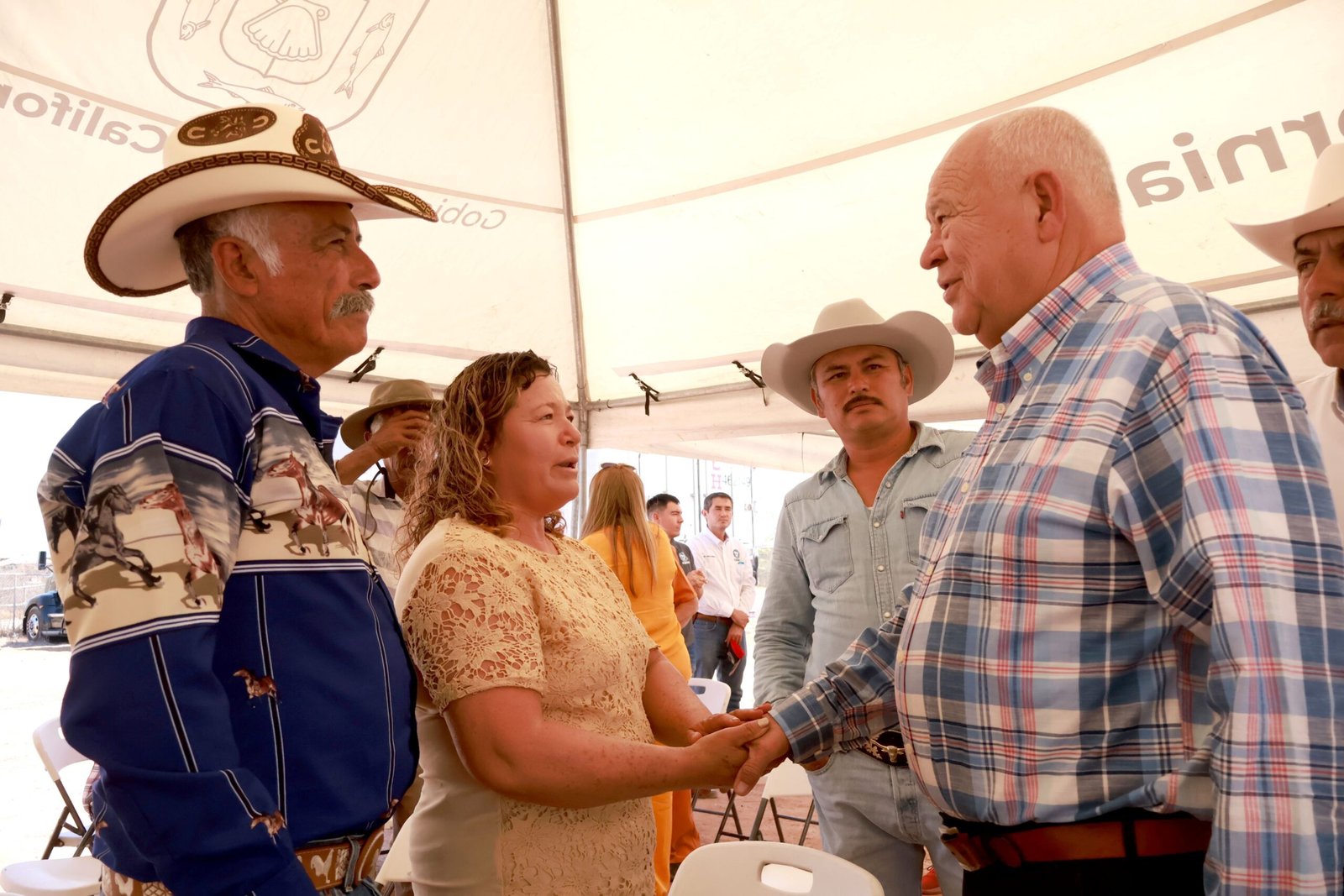 Durante este acto, acompañado por el secretario de Pesca, Acuacultura y Desarrollo Agropecuario, Alfredo Bermúdez Beltrán, y de la alcaldesa Milena Quiroga Romero, así como del presidente de la Asociación Ganadera Regional, Heriberto Rochín, el mandatario entregó nueve apoyos a las asociaciones ganaderas de La Paz y Los Cabos para la adquisición y distribución de forrajes para enfrentar los efectos de la sequía.