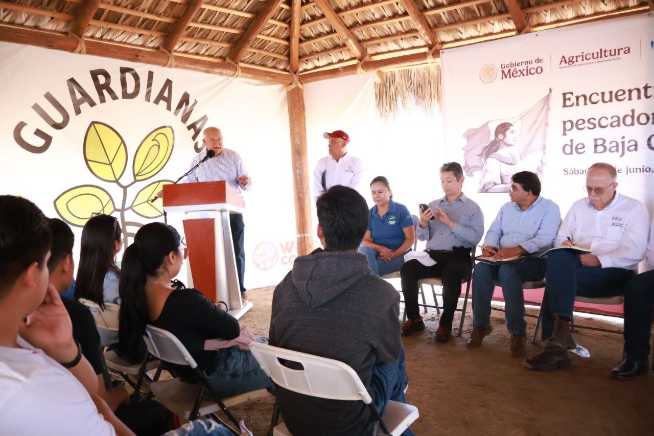 Acompañado por el secretario de Agricultura y Desarrollo Rural, Julio Berdegué Sacristán, y el titular de la Comisión Nacional de Acuacultura y Pesca (CONAPESCA), Alejandro Flores Nava, el mandatario estatal dialogó con integrantes del grupo Guardianas del Conchalito SPR de RL y de la organización Rescatando La Ensenada – Federación de Cooperativas de Pescadores Sustentables del Manglito, quienes expusieron sus principales inquietudes, retos y propuestas para fortalecer su actividad productiva bajo un enfoque de sustentabilidad y legalidad.