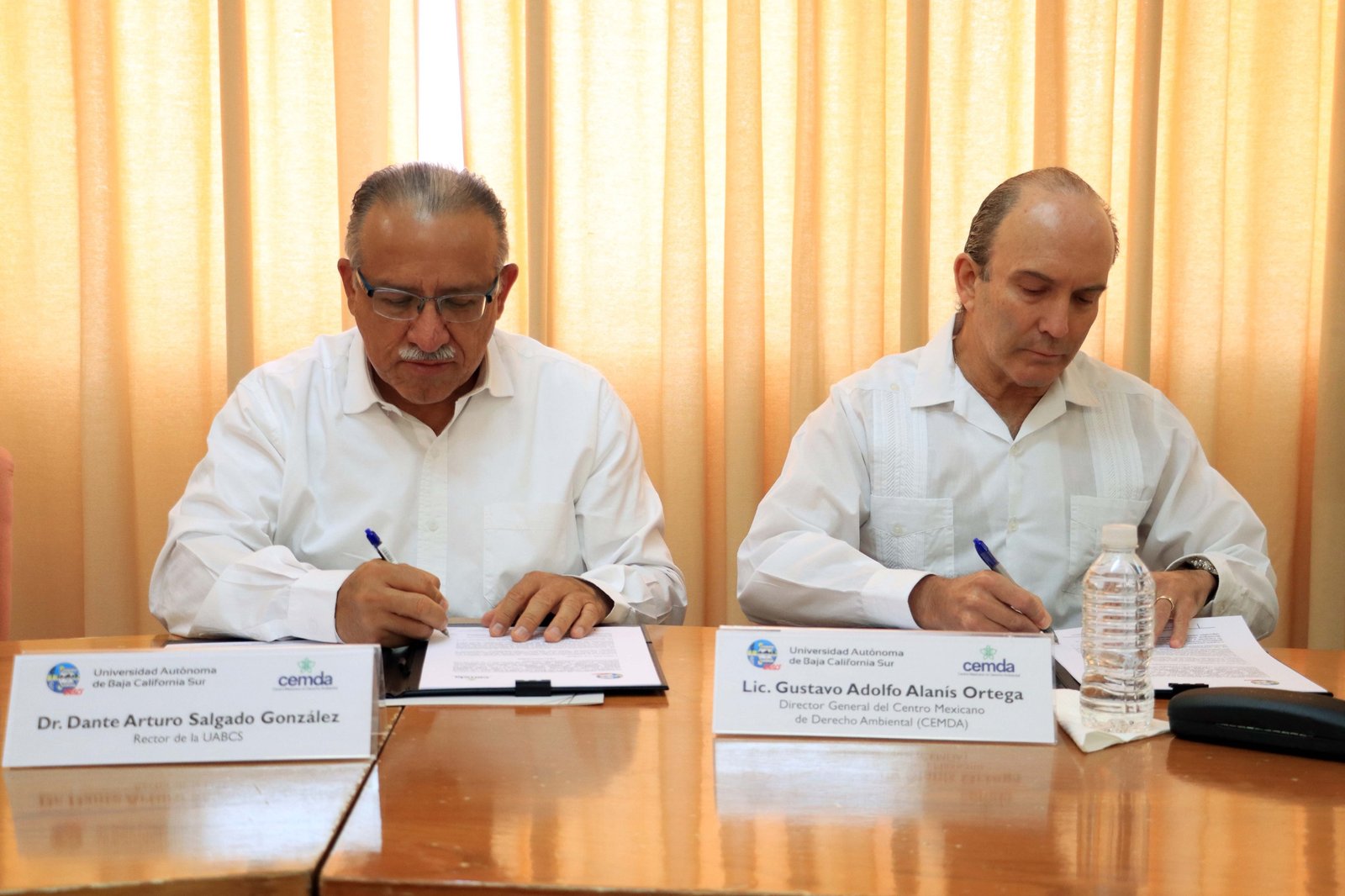 El acuerdo fue signado por el rector de la UABCS, Dr. Dante Salgado González, y por el director general de CEMDA, Lic. Gustavo Alanís Ortega. Durante la ceremonia, celebrada en las instalaciones universitarias, estuvieron presentes integrantes del cuerpo directivo y académico de la institución, así como representantes del CEMDA.