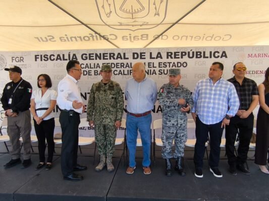 En el evento estuvieron presentes el gobernador del estado, el fiscal federal de Baja California Sur, el procurador de la entidad y representantes de Marina, Defensa, Guardia Nacional, Procuraduría General de Justicia del Estado, que forman parte de la Mesa de Seguridad Estatal.