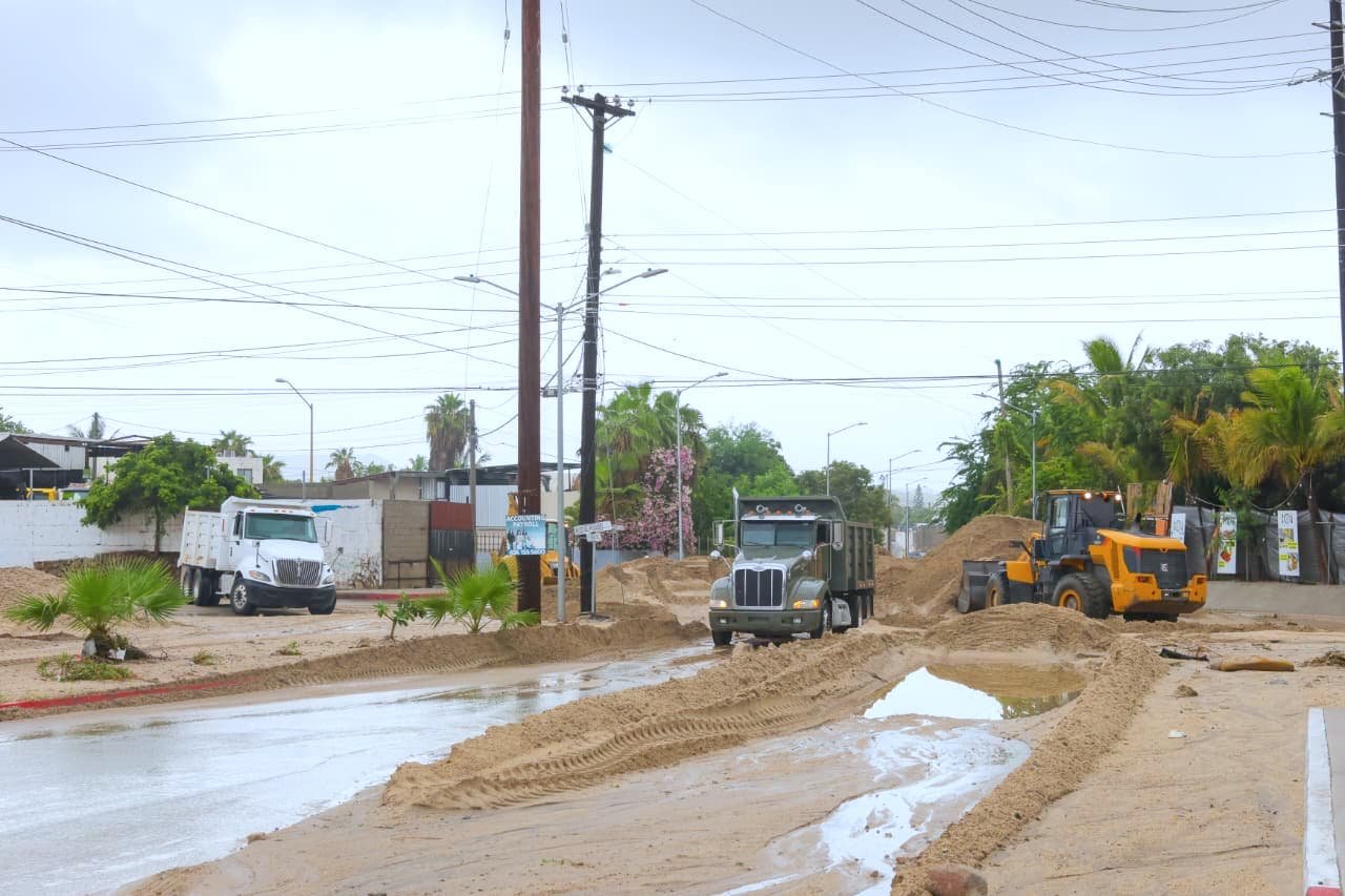 Las cuadrillas municipales han trabajado de manera ininterrumpida desde las primeras horas, atendiendo los puntos más afectados. En San José del Cabo se realizaron labores en el bulevar Forjadores, la carretera federal a la altura de San José Viejo, Zacatal y Santa Rosa, además de la avenida Aguajitos y calles del centro como Coronado, Margarita Maza de Juárez y Benito Juárez.