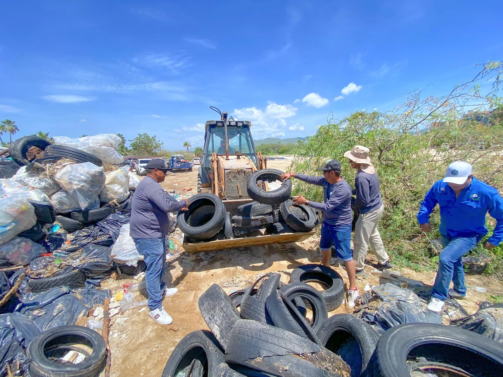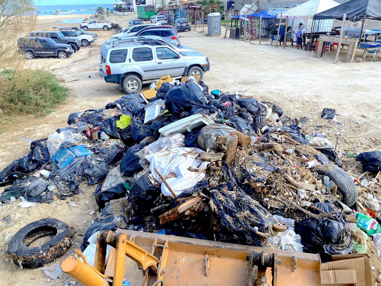 Los Cabos, Baja California Sur. – El Gobierno municipal que preside Christian Agúndez Gómez, por medio del personal de la Zona Federal Marítimo Terrestre (ZOFEMAT), efectuó una jornada de limpieza y rehabilitación en playa 8 Cascadas en Cabo San Lucas, en la cual se recolectaron un total de 110 toneladas de basura, tras el paso del huracán Lorena.