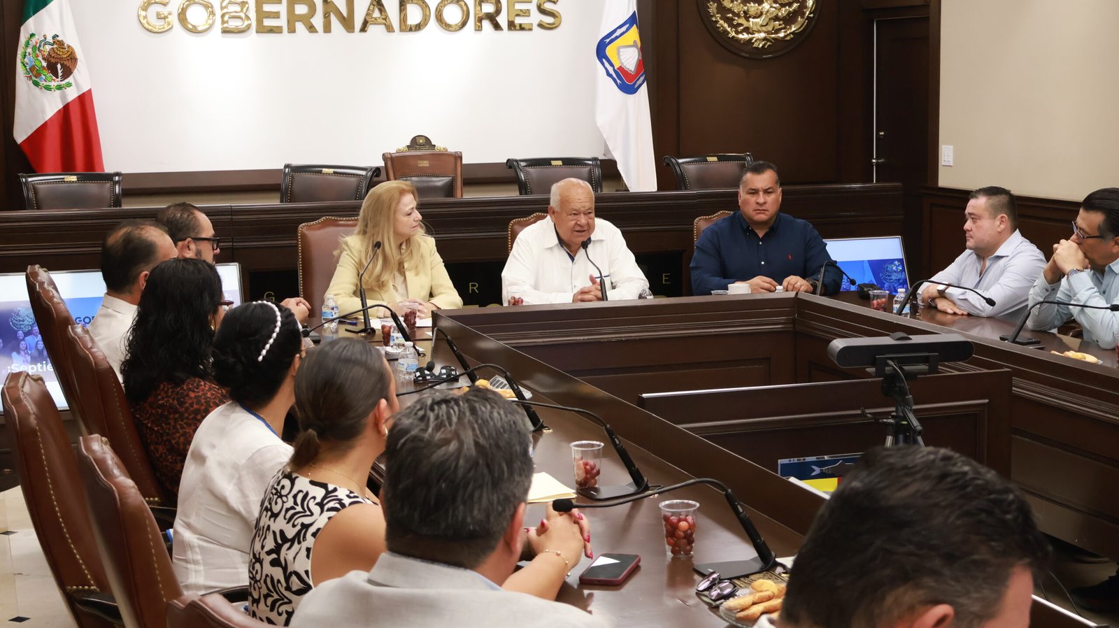 El gobernador del estado, Víctor Manuel Castro Cosío, acompañado del secretario General de Gobierno, José Saúl González Núñez, sostuvo un encuentro de trabajo con integrantes del Colegio de Notarios de Baja California Sur, que preside Nancy Hevia Aguiar, ante quienes ratificó el compromiso de la administración estatal de sumarse a la campaña nacional del mes del testamento.