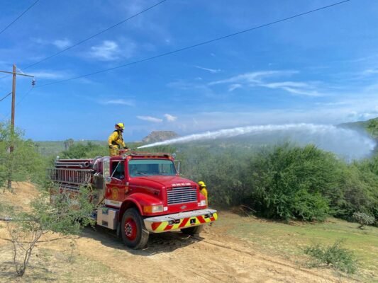 Los Cabos, Baja California Sur.- Luego de cinco horas de intensas maniobras, 15 elementos del Departamento de Bomberos de San José del Cabo lograron sofocar en su totalidad un incendio forestal registrado la mañana de este miércoles 24 de septiembre en la comunidad de Buenavista. El siniestro fue provocado por un corto circuito originado tras la caída accidental de un poste de electricidad.