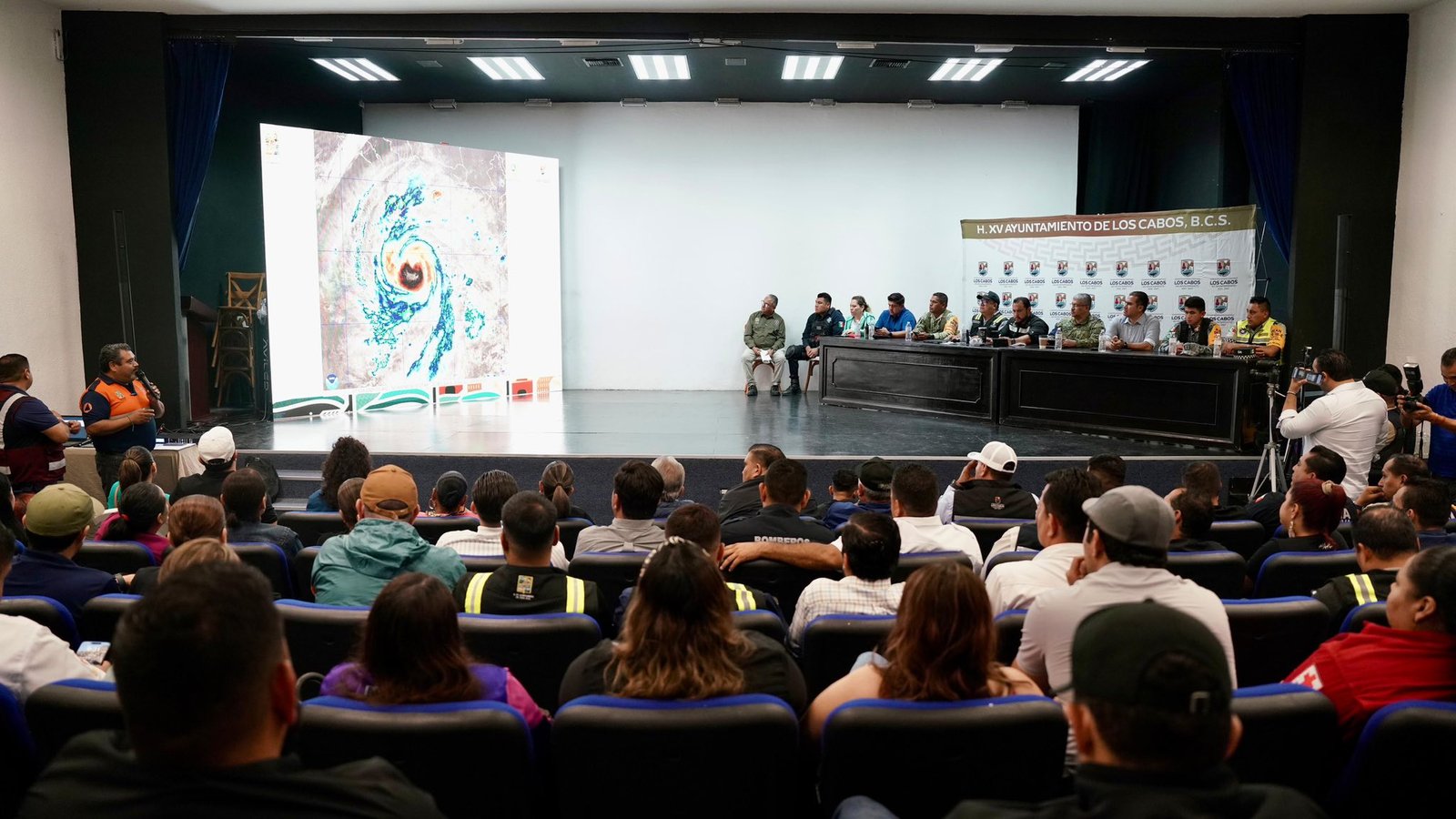Durante la asamblea, se informó que desde la tarde del mismo jueves fueron habilitados 21 refugios temporales que integran el plan A de contingencia, así como como trabajos preventivos y de evacuación en colonias catalogadas como de alto riesgo, sumando hasta la noche del jueves un total de 76 personas refugiadas; 28 en San José del Cabo, 45 en Cabo San Lucas y 3 en Miraflores.