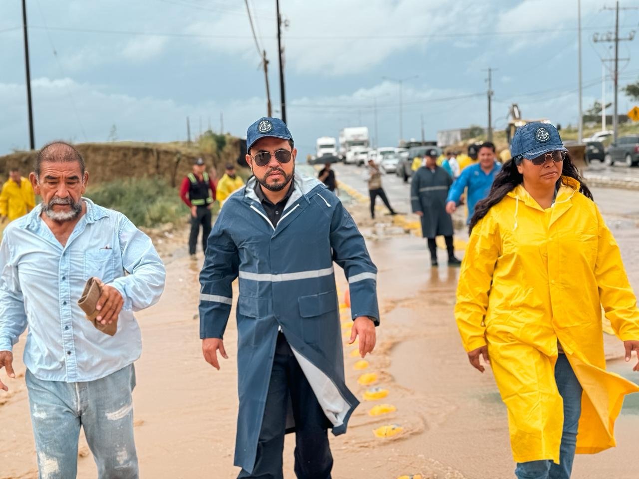 Los Cabos, Baja California Sur.- Con el objetivo de garantizar la seguridad y el bienestar de las familias cabeñas ante los efectos del huracán “Priscilla”, el presidente municipal de Los Cabos, Christian Agúndez Gómez, se mantiene al pendiente de los estragos ocasionados por las lluvias, realizando acciones coordinadas junto con la delegada de Cabo San Lucas, Karina de la O, para atender de manera oportuna las necesidades de la población.
