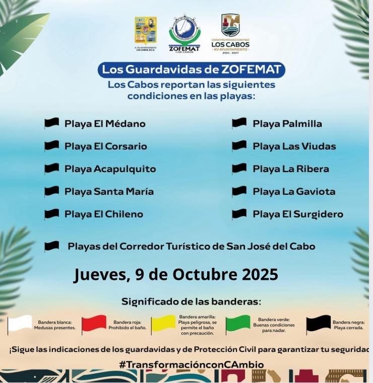 ZOFEMAT PLAYAS BANDERA NEGRA Continue Reading Previous Playas de Los Cabos permanecen cerradas hasta nuevo aviso: Zofemat Deja una respuesta Cancelar la respuestaTu dirección de correo electrónico no será publicada. Los campos obligatorios están marcados con *Comentario * Nombre * Correo electrónico * Web Guarda mi nombre, correo electrónico y web en este navegador para la próxima vez que comente.