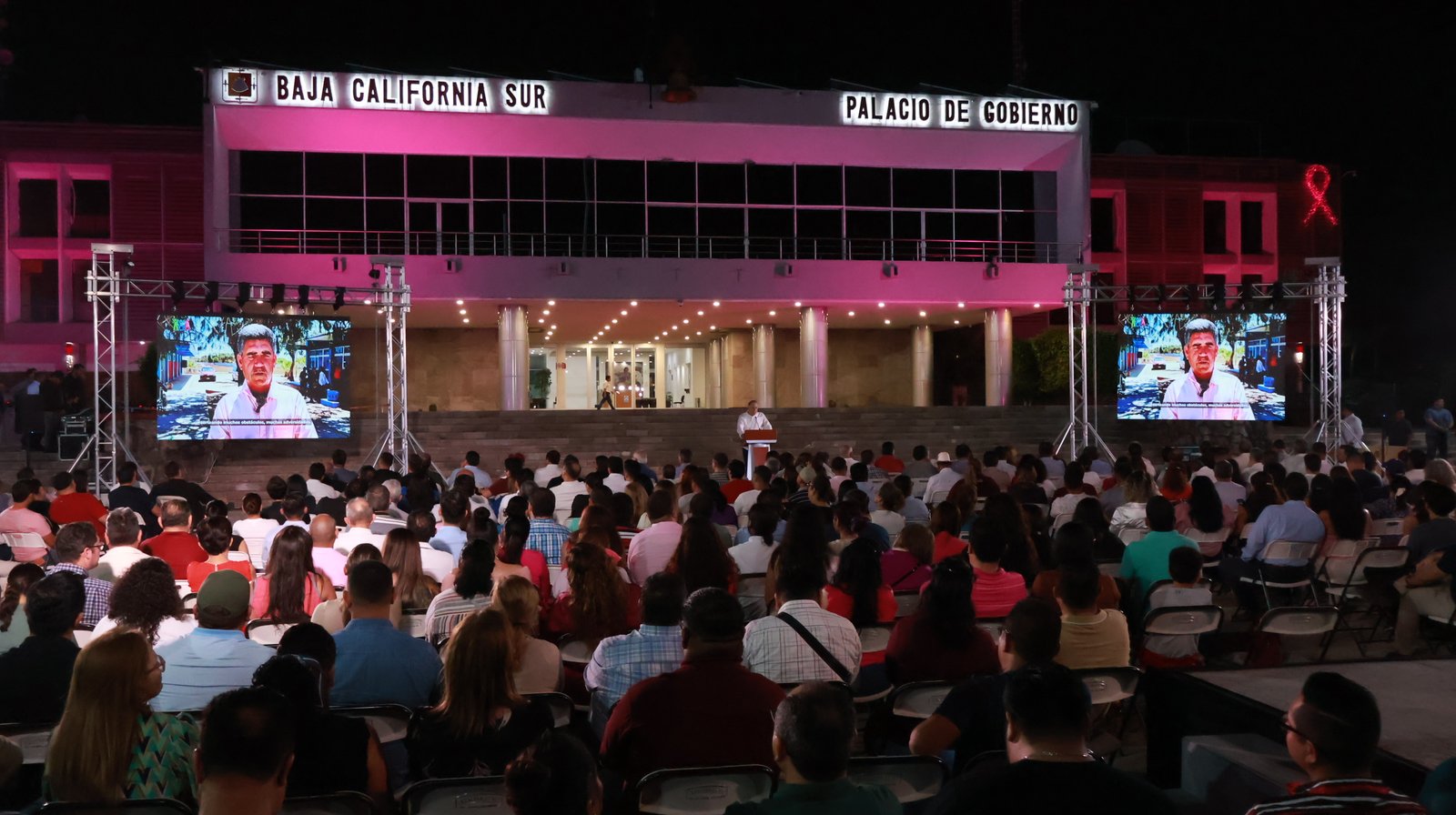 La Paz, BCS, a 10 de octubre del 2025.- El gobernador del estado, Víctor Manuel Castro Cosío encabezó un encuentro con titulares y personal de las Secretarías del Trabajo, Bienestar y Desarrollo Social (STByDS) así como de Turismo y Economía (SETUE), además de servidores públicos federales y ciudadanía en general, con el objetivo de conocer los avances institucionales rumbo al Cuarto Informe de Gobierno, que se presentará el próximo mes de noviembre.