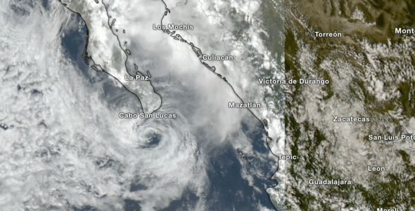 Los vientos sostenidos oscilarán entre 45 y 55 km/h con rachas de 65 a 75 km/h en la zona sur de Baja California Sur, además de olas de 2.5 a 3.5 metros en las costas de Los Cabos, Sinaloa y Nayarit, y de 1.5 a 2.5 metros hacia el occidente de Baja California.