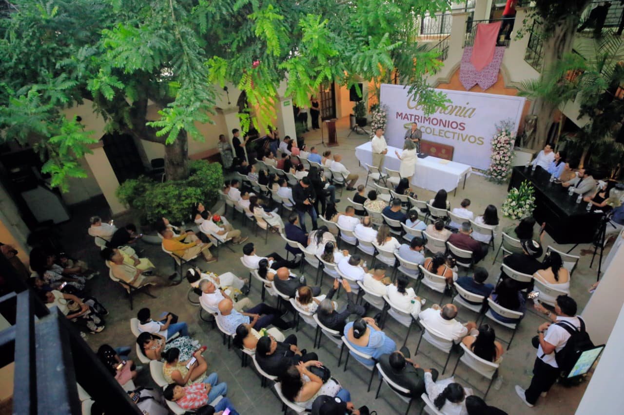 • Más de 50 parejas formalizaron su unión legal en una ceremonia organizada por el Ayuntamiento, el DIF y el Registro Civil.