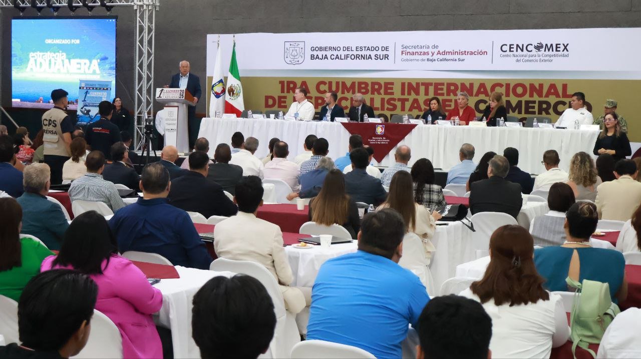 La Paz, Baja California Sur.- El gobernador del estado, Víctor Manuel Castro Cosío, inauguró este jueves en la ciudad de La Paz la Primera Cumbre Internacional de Especialistas en Comercio Exterior y Aduanas 2025, donde resaltó la importancia de contar con un sistema aduanero moderno, confiable y seguro para Baja California Sur, México y el mundo. Confió en que, durante el encuentro de tres días de jornadas, se lograrán acuerdos concretos que permitirán avanzar en los objetivos planteados.