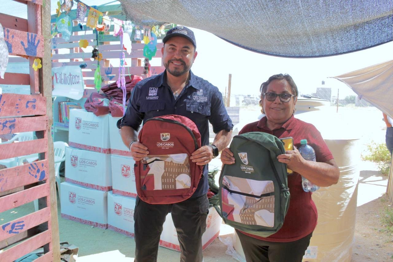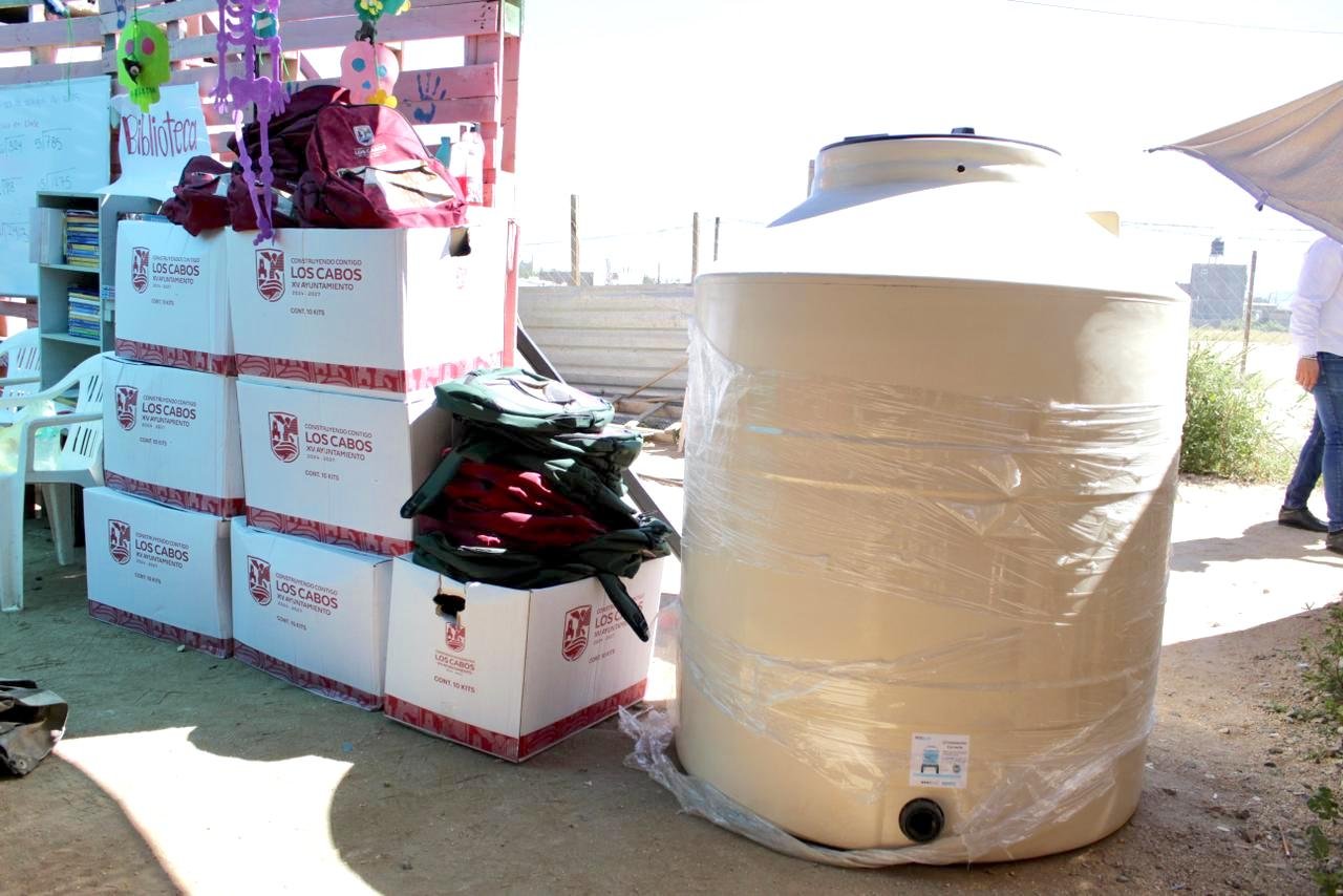 Durante la visita, el alcalde hizo entrega de 100 mochilas escolares, además de realizar la donación de un tinaco y el suministro de agua potable para otro tinaco que ya se encuentra en funcionamiento, como parte del compromiso de su administración con la educación y el bienestar de la niñez cabeña.