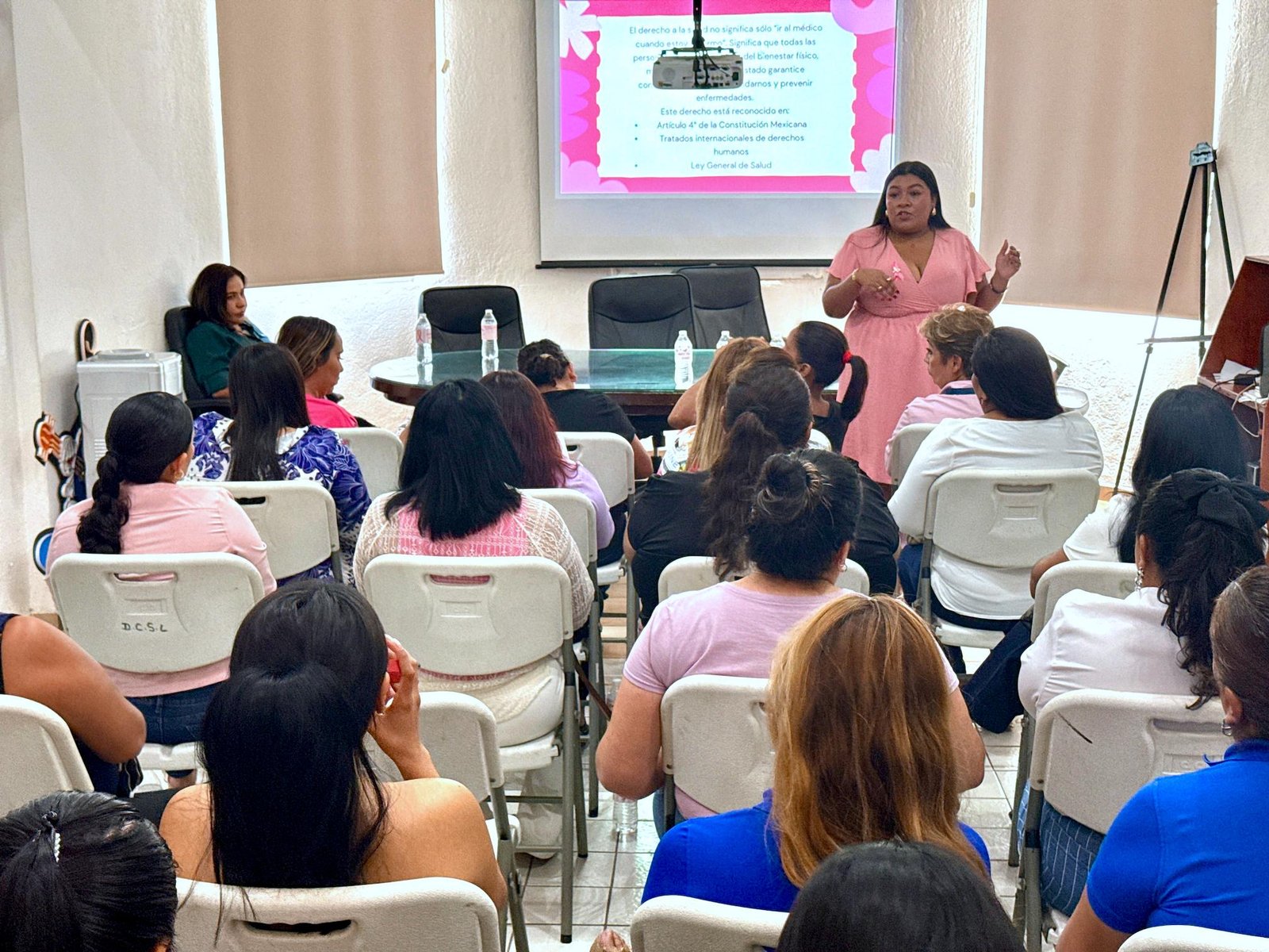 Los Cabos, BCS, a 30 de octubre del 2025.- En el marco del mes de sensibilización sobre el cáncer de mama, la Subcoordinación de Derechos Humanos, en conjunto con la Unidad Médica de Cabo San Lucas, llevó a cabo la jornada “Moviéndote por tus Derechos” y como parte del programa, en el edificio delegacional se realizó la plática “Cáncer de Mama y Derecho a la Salud”, dirigida a mujeres coordinadoras y subdelegadas de la delegación municipal.