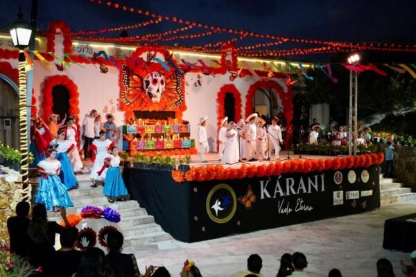 Los Cabos, Baja California Sur.— Como parte de las actividades del Festival Mar de Ofrendas, el XV Ayuntamiento de Los Cabos que preside Christian Agúndez Gómez, en coordinación con San Agustín International School, llevó a cabo el Festival Karani: “Vuelo Eterno” en la plaza pública Amelia Wilkes Ceseña, una celebración dedicada al Día de Muertos, en la que se rindió homenaje a las tradiciones y costumbres mexicanas que fortalecen la identidad cultural de la comunidad.