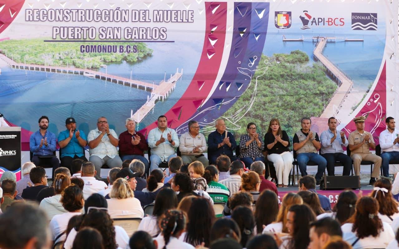 Comondú, Baja California Sur.- Como parte de su gira de trabajo por el municipio de Comondú, el gobernador Víctor Manuel Castro Cosío acudió a Puerto San Carlos, para entregar las obras de reconstrucción del muelle turístico, cumpliendo con el compromiso de su administración de impulsar el bienestar y la seguridad de las familias, fortalecer la actividad turística y promover el desarrollo social y económico de la comunidad.