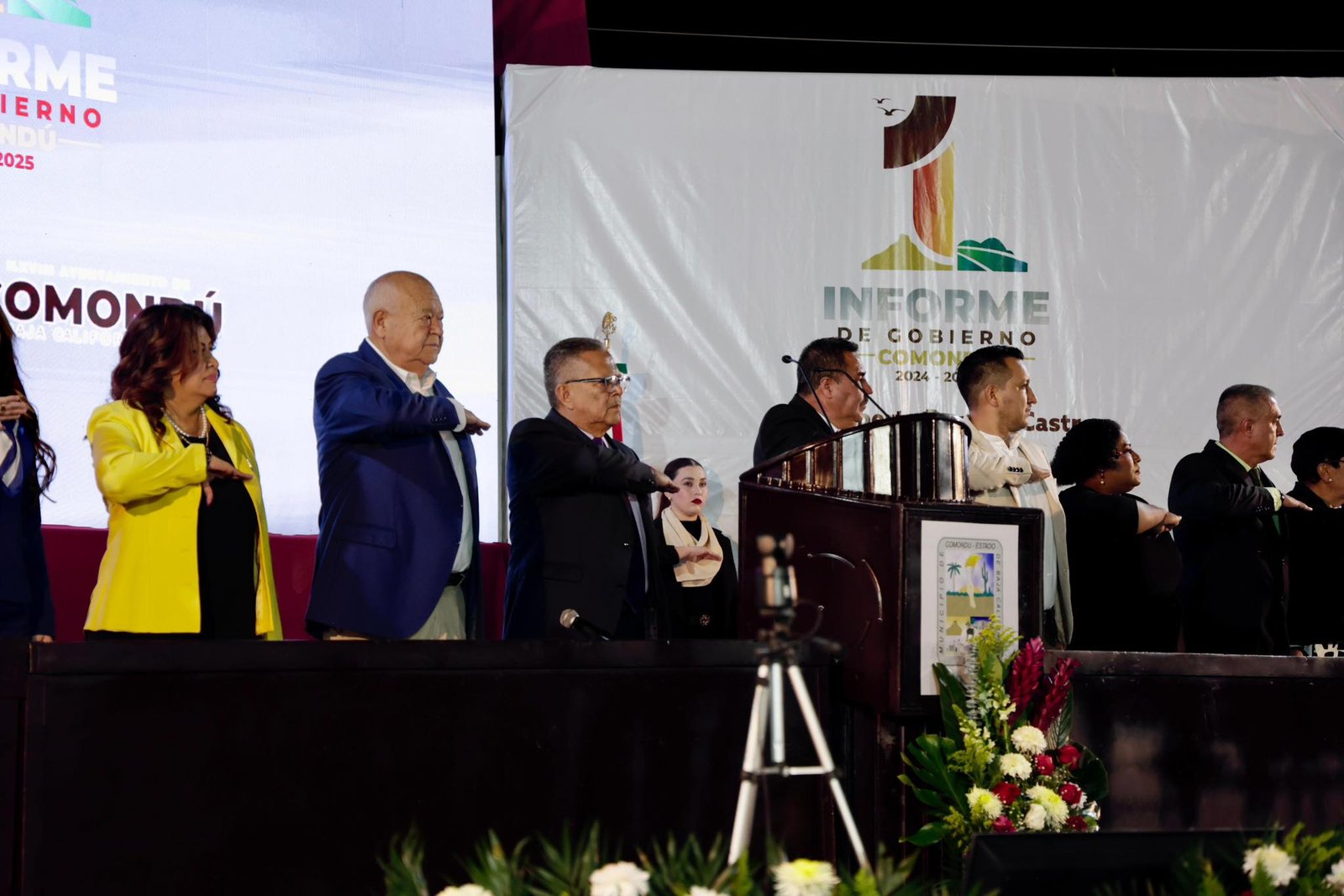 Comondú, BCS, a 11 de noviembre del 2025.- Al asistir a la lectura del primer informe de resultados del alcalde de Comondú, Roberto Pantoja Castro, el gobernador Víctor Manuel Castro Cosío destacó el trabajo coordinado que se ha desarrollado a favor de las y los habitantes de esta tierra, el corazón agrícola de Baja California Sur, donde se comprometió a continuar impulsando obras sociales y de infraestructura que transformen.