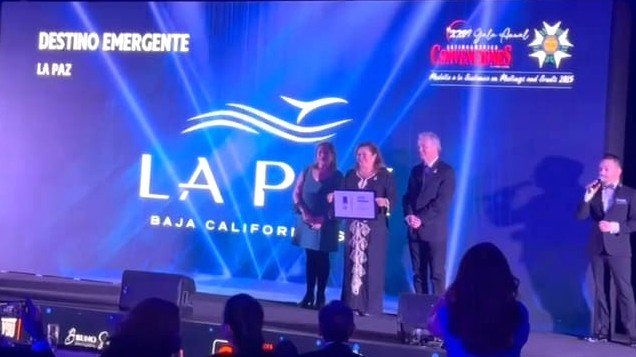 La secretaria de Turismo y Economía, Maribel Collins, anunció que La Paz fue reconocida por segundo año consecutivo con la Medalla a la Excelencia 2025, otorgada por la revista Convenciones Latinoamérica, en la categoría “Mejor Destino Emergente en Meetings & Events”.