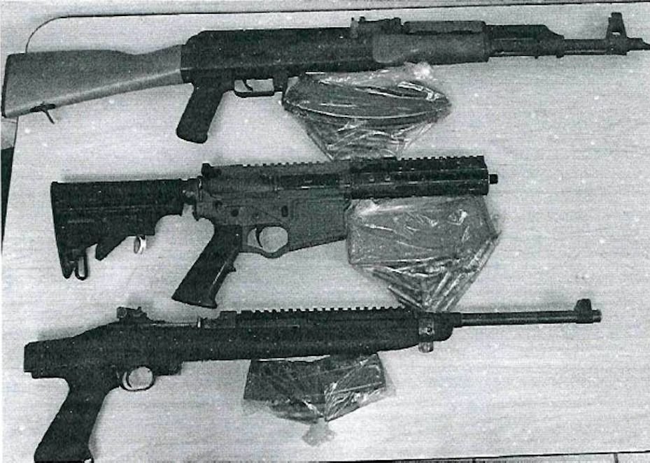 Al acudir a corroborar los hechos, elementos de la Guardia Nacional (GN) lograron la detención de Christian “M”, a quien le aseguraron cinco armas de fuego tipo fusil y una tipo carabina, 30 cargadores, 897 cartuchos, una granada de fragmentación, 12 kilos 298 gramos 600 miligramos de clorhidrato de metanfetamina, 837 gramos de clorhidrato de cocaína, 980 gramos 900 miligramos de heroína y tres vehículos con placas de circulación de procedencia extranjera.