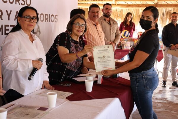 Comondú, BCS. 14 de noviembre, 2025.- El Sistema Estatal DIF (SEDIF), en coordinación con el Instituto de Capacitación para los Trabajadores del Estado de Baja California Sur (ICATEBCS), llevó a cabo las ceremonias de clausura de los cursos de “Elaboración de prendas de vestir con manta y mezclilla” en las comunidades rurales de San Luis Gonzaga, municipio de Comondú, y Puerto Chale, municipio de La Paz, informó la presidenta honoraria del SEDIF, Patricia López Navarro.