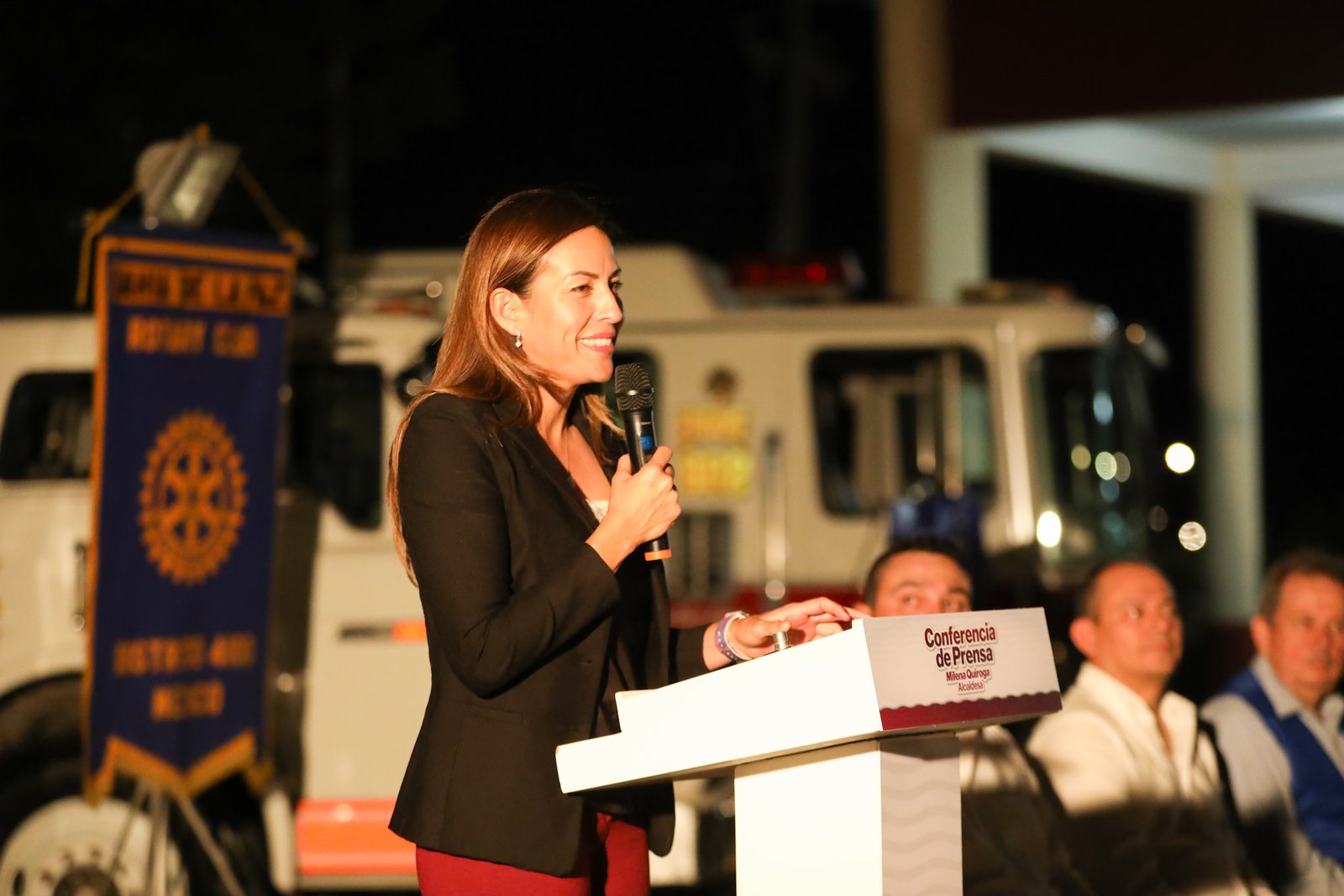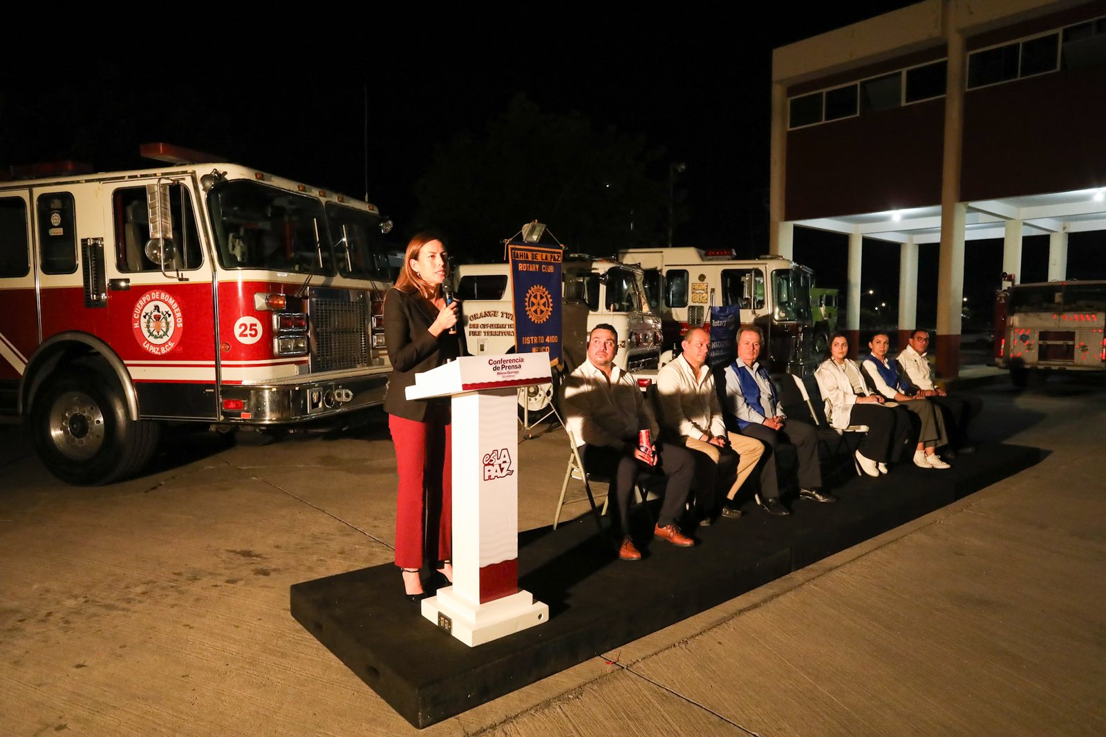 En este contexto, la presidenta municipal agradeció el respaldo del sector empresarial y del Patronato de Bomberos de La Paz en coordinación con el Club Rotario Bahía de La Paz, quienes han apoyado en la recolección de recursos y adquisición de equipamiento para la corporación.