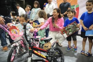 La festividad concluyó con la rifa de regalos y la entrega de bicicletas, patines y juguetes para las niñas y los niños que asistieron a la posada.