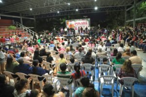 La alcaldesa Milena Quiroga Romero encabezó la primera posada navideña 2025, organizada por el Ayuntamiento de La Paz, en el Parque Los Mangos de la colonia Indeco, donde niñas, niños y familias disfrutaron de rifas, regalos, actividades recreativas y momentos de sana convivencia.