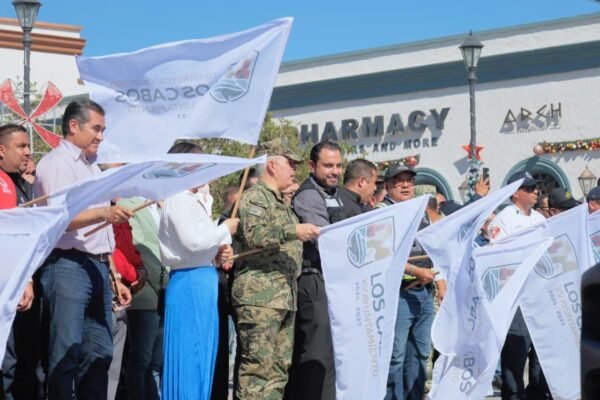 Los Cabos, Baja California Sur.- Desde la explanada del palacio municipal, en San José del Cabo, autoridades municipales, estatales y federales, así como cuerpos de auxilio y Fuerzas Armadas dieron el banderazo de inicio al Operativo de Vigilancia, Seguridad y Auxilio Guadalupe-Reyes 2025-2026, con el objetivo de reforzar la protección, prevención y atención a la ciudadanía durante la temporada decembrina.