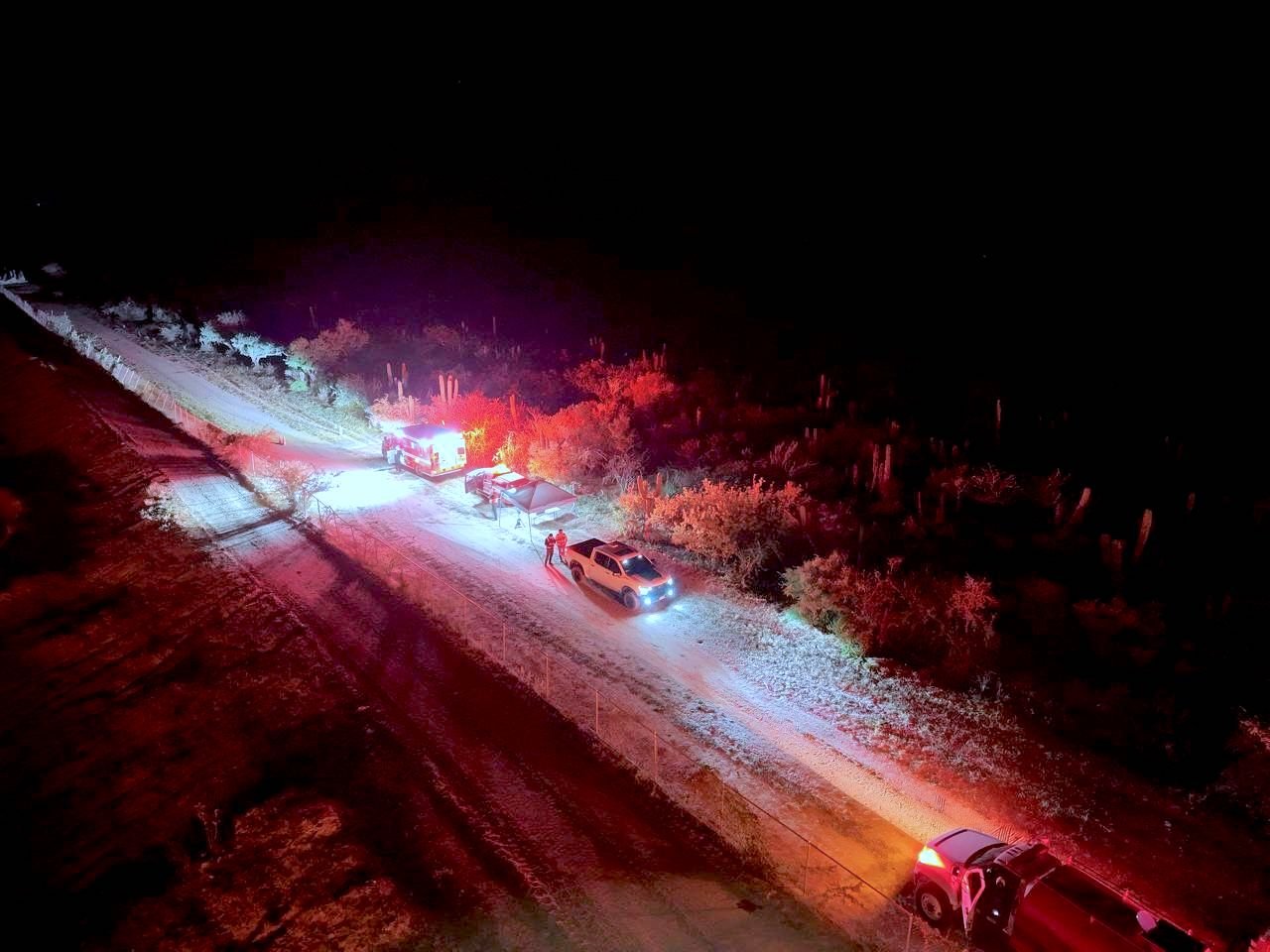 El Cuerpo de Bomberos de Cabo San Lucas movilizó tres máquinas extintoras, una pipa, así como vehículos utilitarios y la Unidad Especializada en Drone y el suministro de 15 pipas particulares.