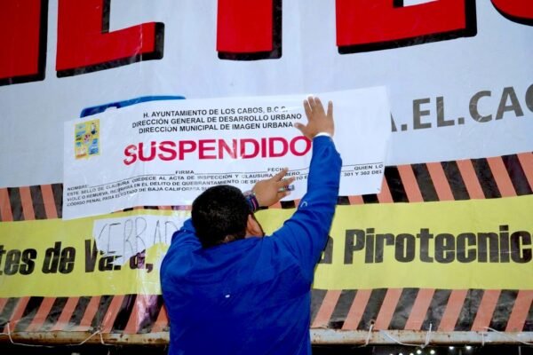 En ese sentido, el secretario general del Ayuntamiento, Alberto Rentería Santana encabezó un operativo interinstitucional mediante el cual la Dirección Municipal de Protección Civil procedió a la clausura de dos establecimientos dedicados a la venta de cohetería, al detectarse que operaba fuera del marco legal y sin contar con los permisos municipales correspondientes; uno de ellos en la colonia Lagunitas y el otro en Los Cangrejos en Cabo San Lucas.