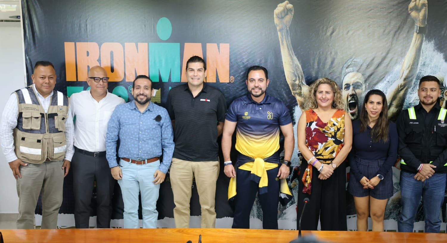 El anuncio oficial se realizó en una rueda de prensa encabezada por el alcalde Christian Agúndez Gómez, quien estuvo acompañado por Mauricio Zavala, director del IRONMAN 70.3 Los Cabos 2026, y Juan Colin, representante de la marca. Asimismo, se contó con la presencia de la directora general de Fomento Económico, Abril Urueta Martínez; el titular del INDEM, Elton Olachea Arce; el secretario particular, José María Jarquín Herrera; el director de Protección Civil y Gestión de Riesgos, Francisco Cota Márquez; el director general de Desarrollo Urbano, Roberto Flores Rivera y el titular de Vinculación y Fomento de las Empresas José Samuel Cisneros Peruyero.