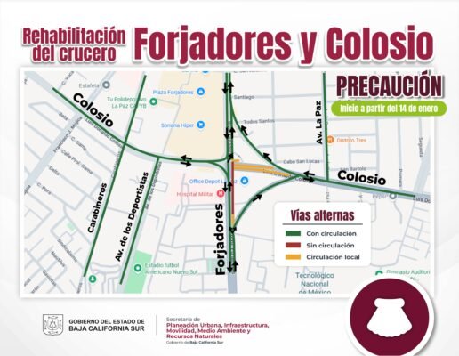 Con el objetivo de fortalecer la infraestructura vial y mejorar la seguridad en los traslados, el Gobierno del Estado iniciará la rehabilitación con carpeta asfáltica en el crucero de los bulevares Forjadores de Sudcalifornia y Luis Donaldo Colosio, en la ciudad de La Paz.